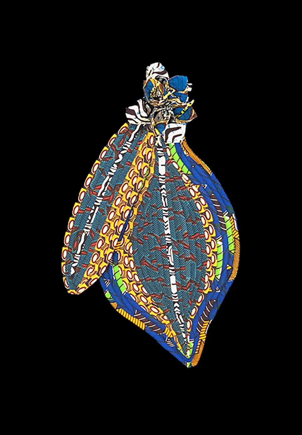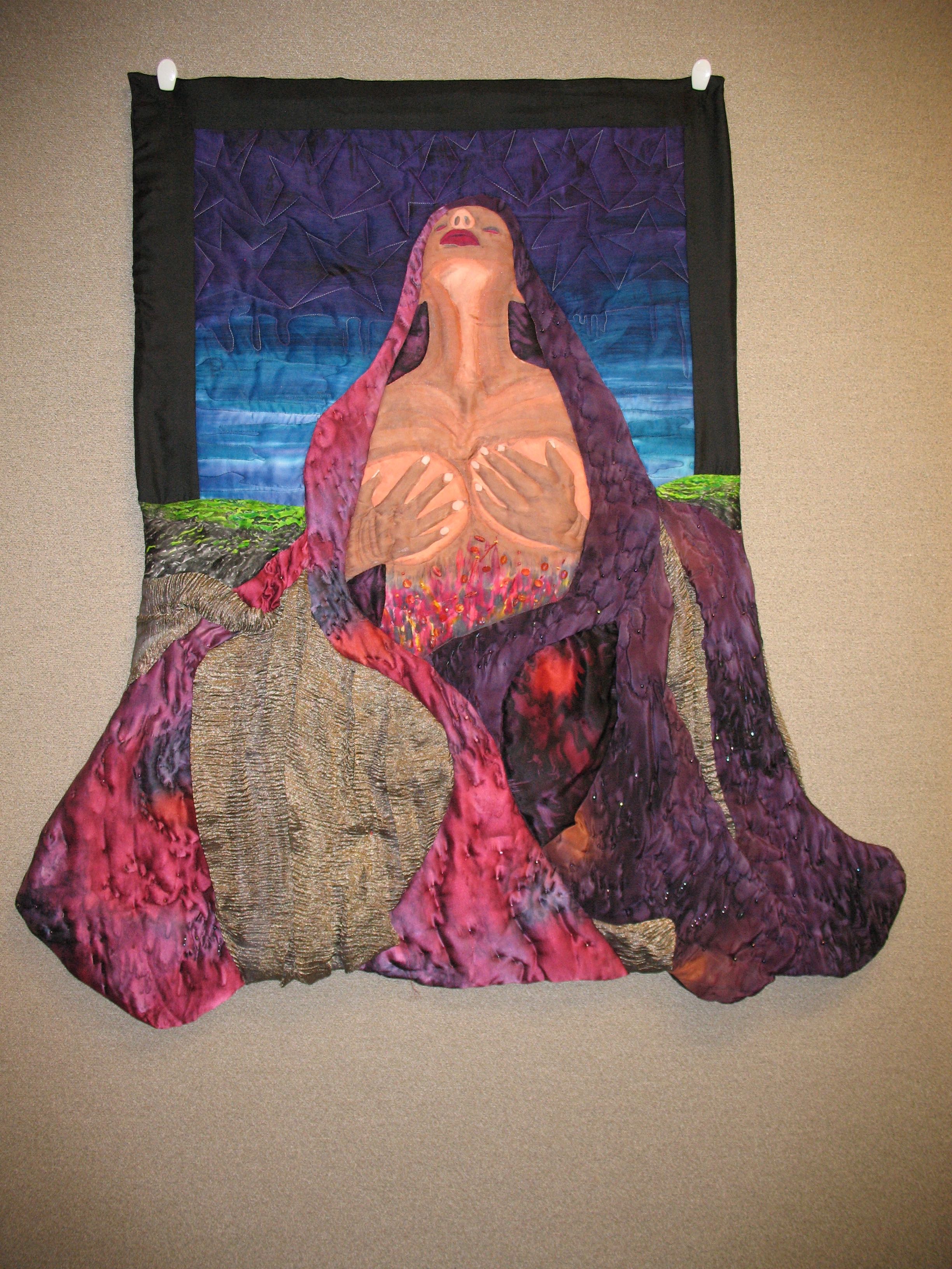 cotton and silk fabrics, some hand painted; polyester thread and yarn