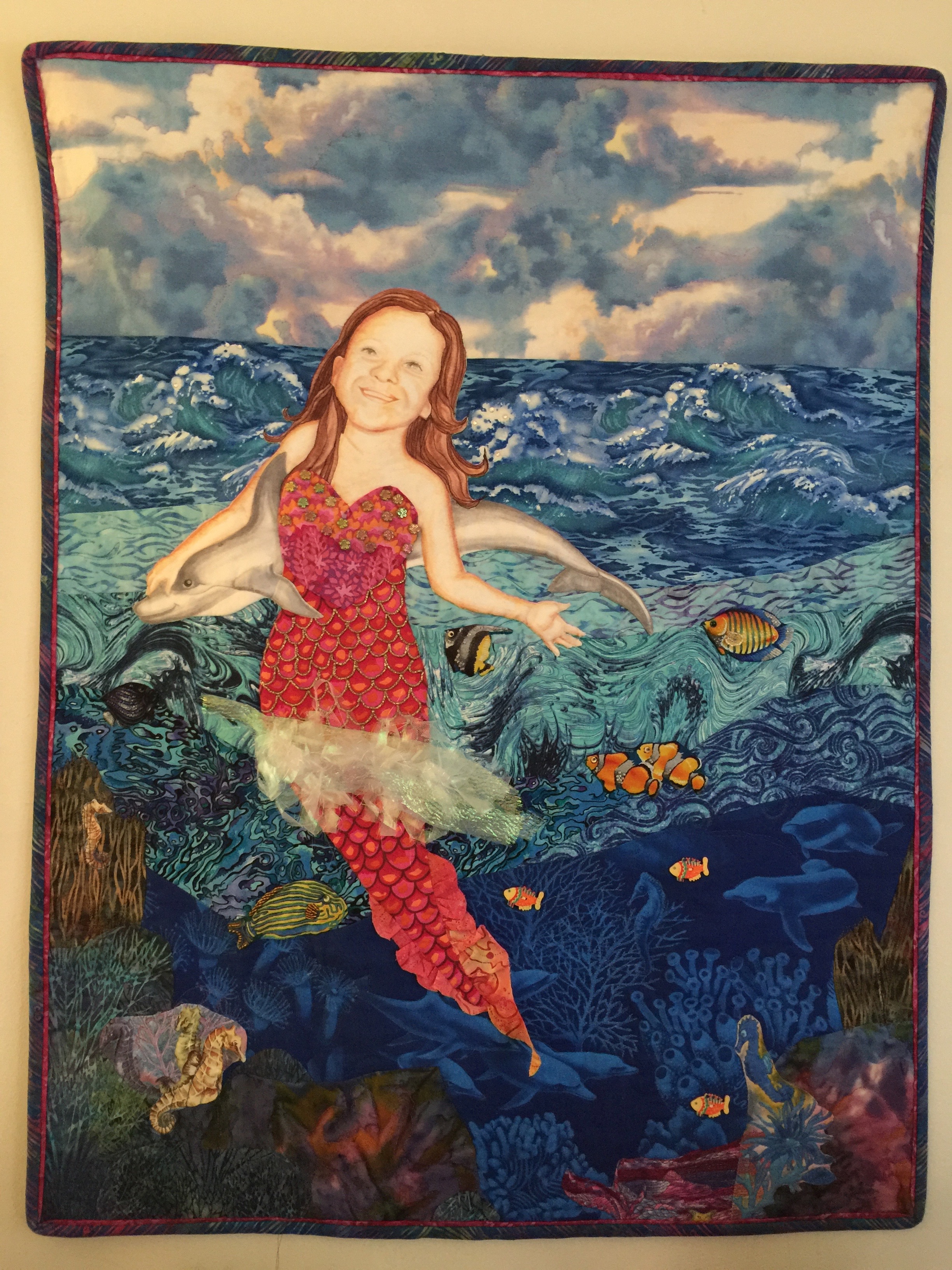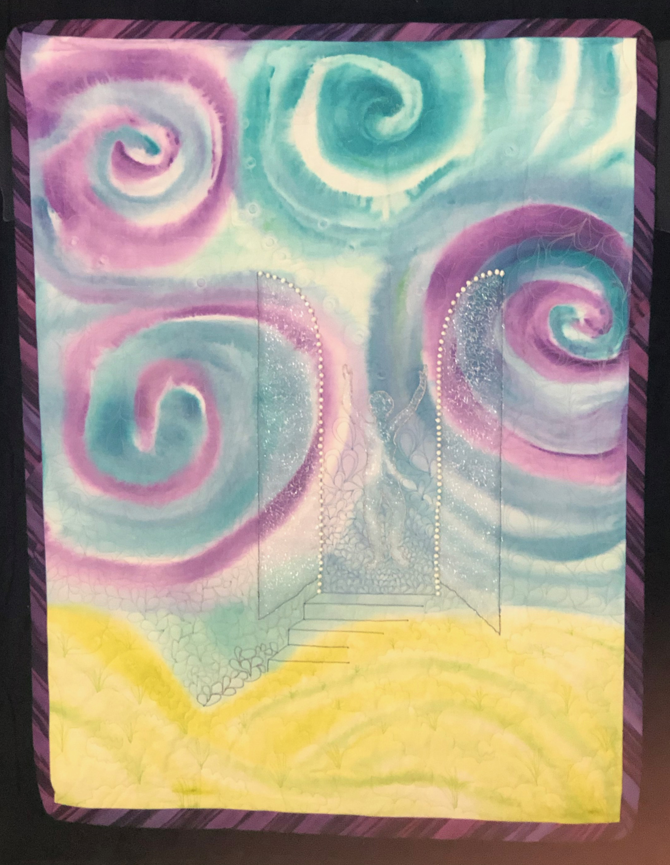 cotton fabrics, some hand painted with Tsukineko inks, some polyester;