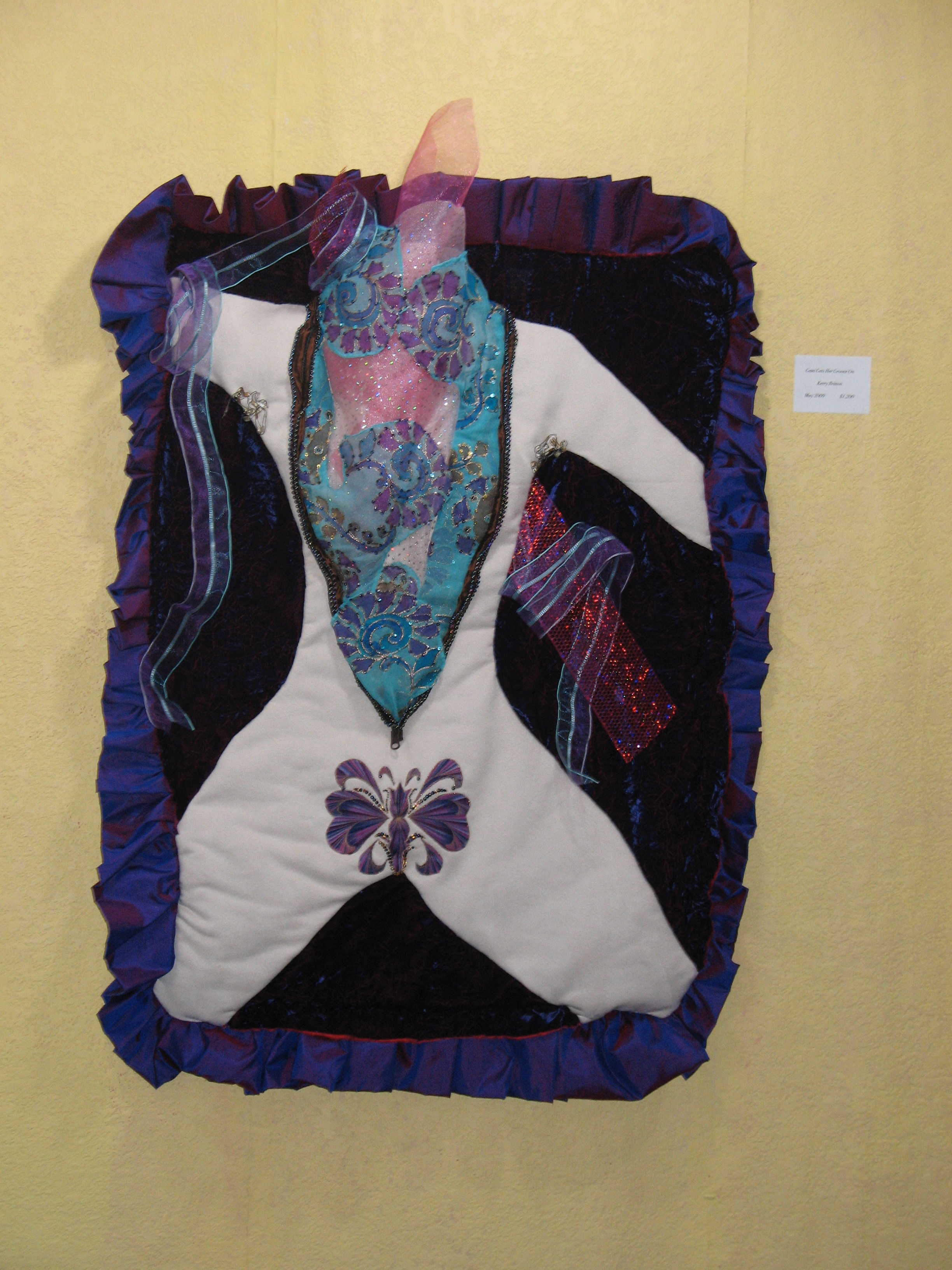 silk, cotton and synthetic fabrics, beads and zipper, sequin stock; polyester thread