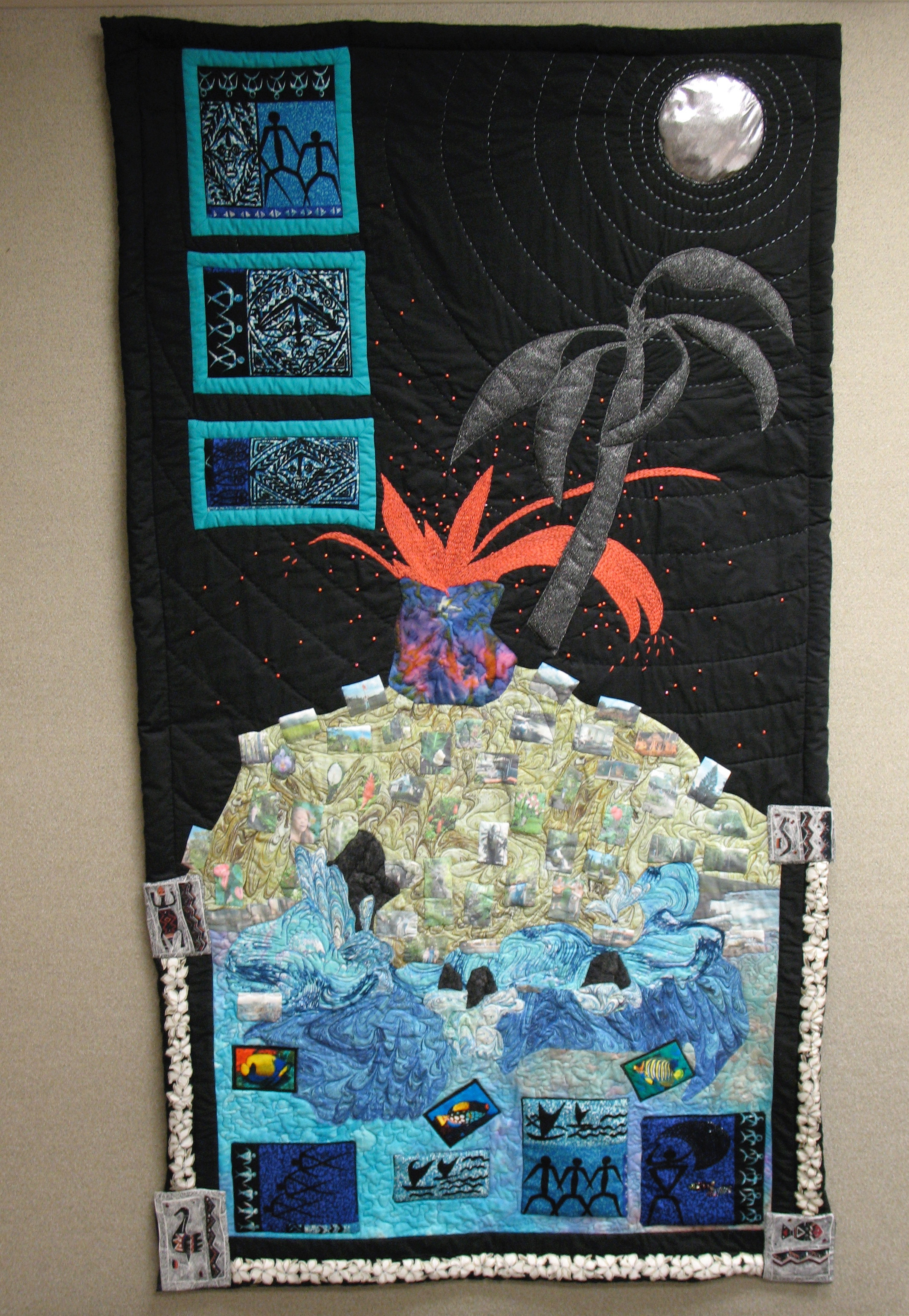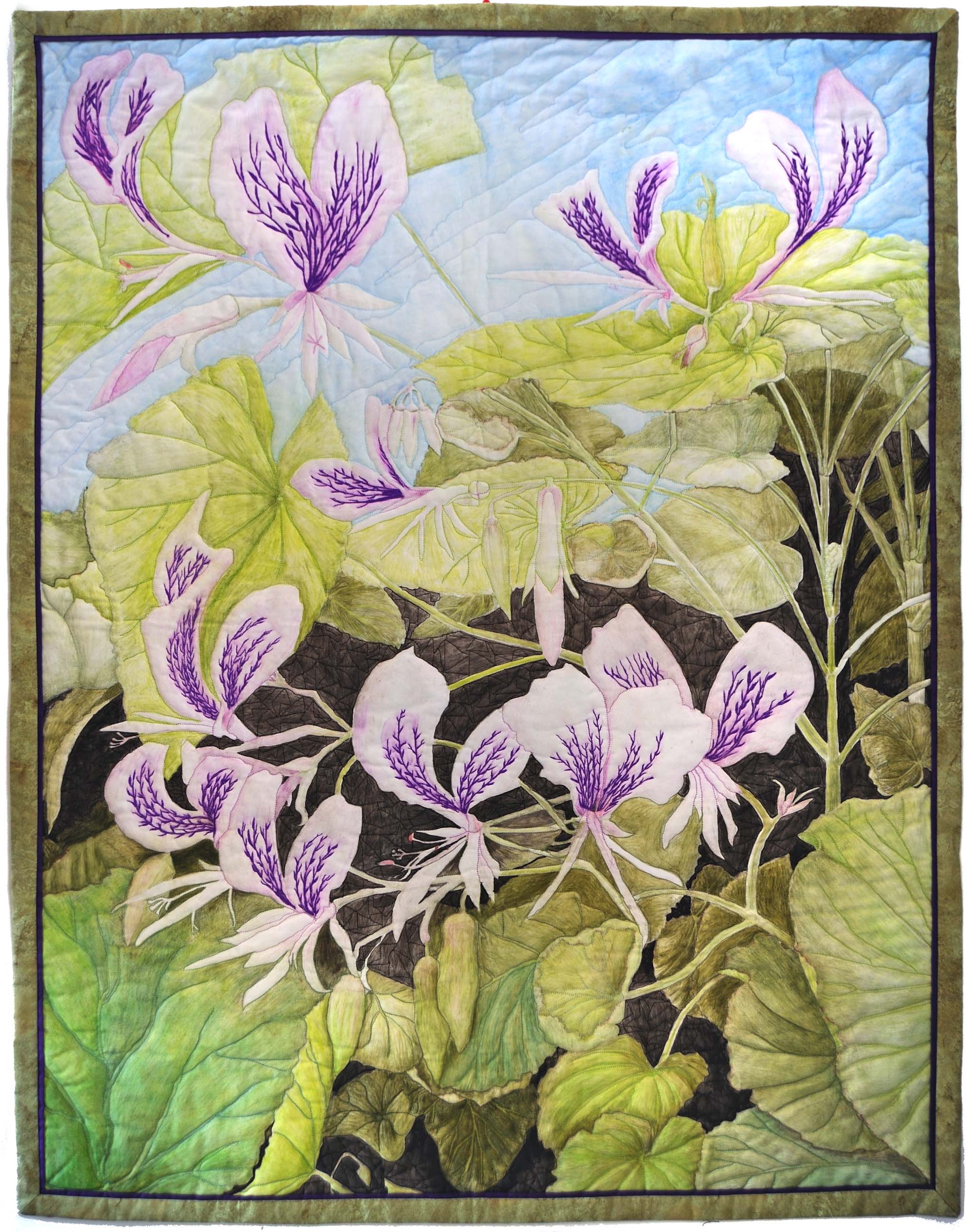 hand painted cotton centers, commercial cotton borders; polyester thread